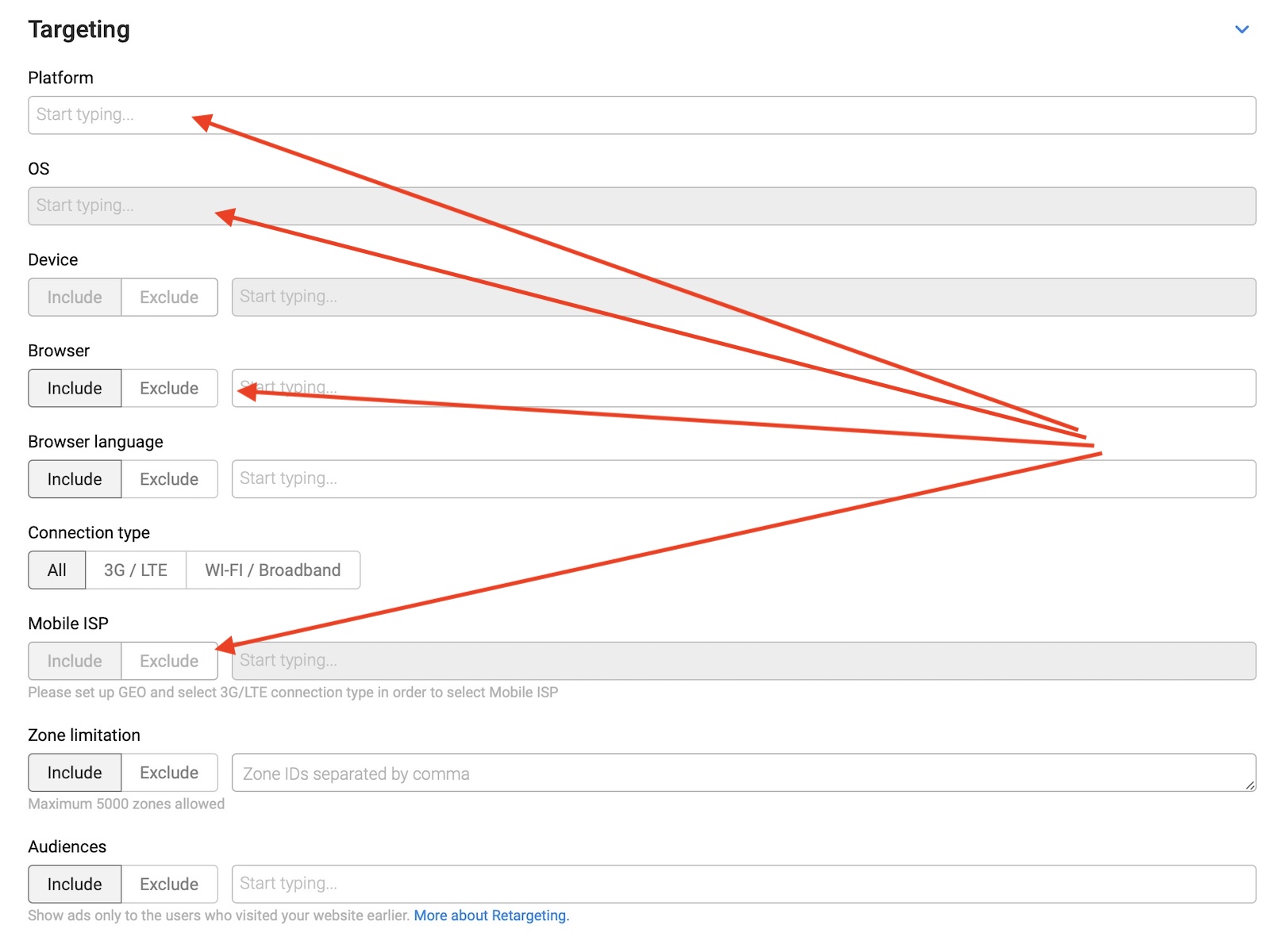 Vayamos abajo a las opciones de targeting: