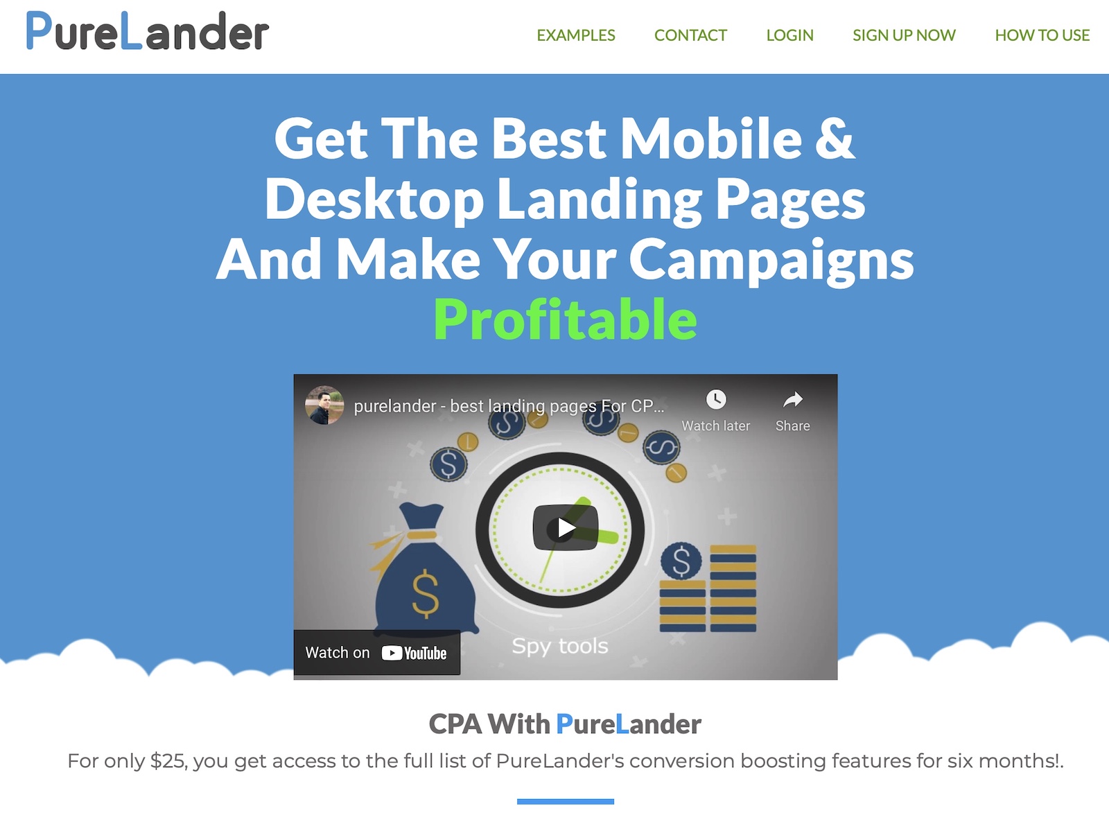 Desde solo $25 por 6 meses, esta es una de las soluciones más baratas para empezar. Terminas pagando menos de $5 por mes. Aunque Purelander no es perfecto, tienen un montón de estilos de páginas de aterrizaje diferentes y es lo suficientemente bueno para empezar.