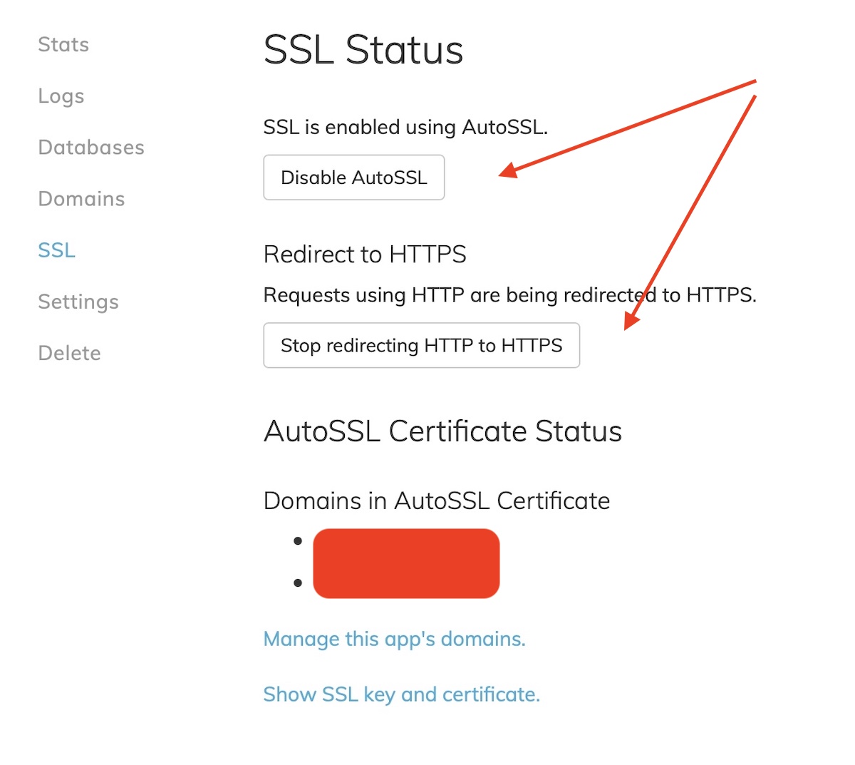 O Serverpilot irá guiá-lo através de tudo o que você precisa para conectar seu novo VPS da Vultr solicitando o IP e a senha do seu VPS. Depois de passar por todas as etapas (deve levar 5 minutos no máximo), você finalmente poderá adicionar um certificado SSL com 2 cliques, conforme mostrado abaixo: